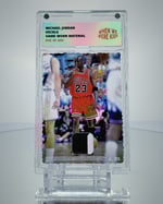The relic in this piece has been carefully integrated into a custom, artist-designed card, created to honor both the moment and the material. This is not a manufactured patch or commemorative fabric. It is a true piece of NBA history, worn in-game by Michael Jordan.